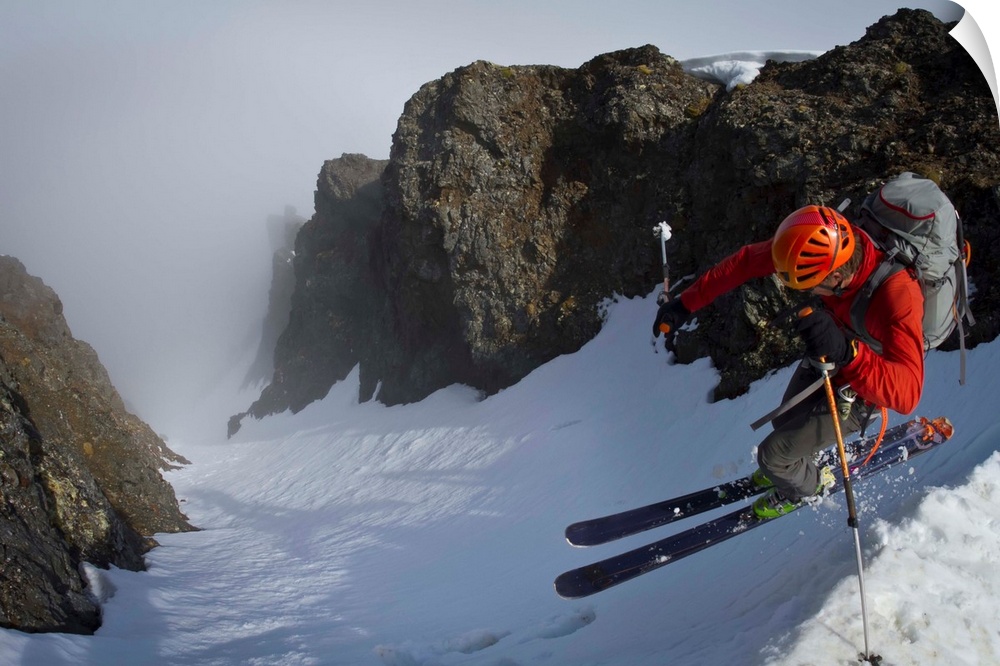 <p>Backcountry skier on West Twin Peak near Eklutna, Western Chugach Mountains, Alaska, Winter.</p>