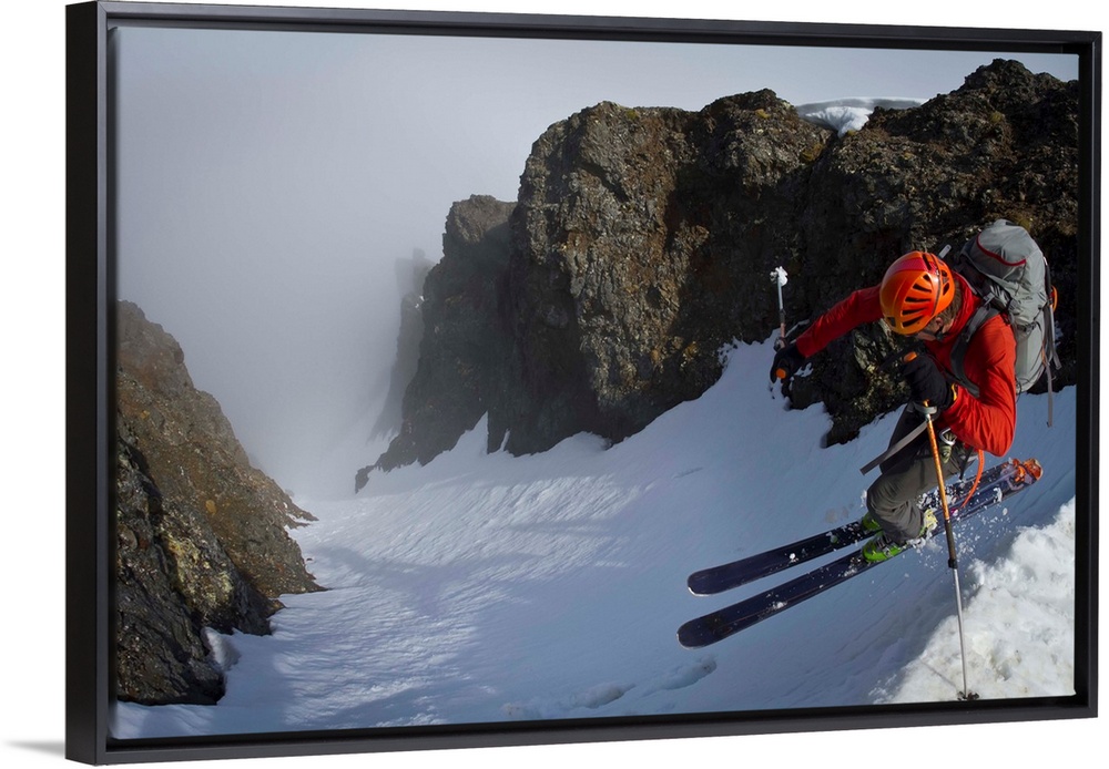 <p>Backcountry skier on West Twin Peak near Eklutna, Western Chugach Mountains, Alaska, Winter.</p>