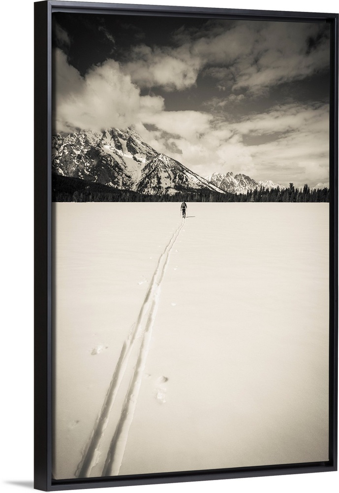 <p>Backcountry skier under Mount Moran, Grand Teton National Park, Wyoming USA</p>