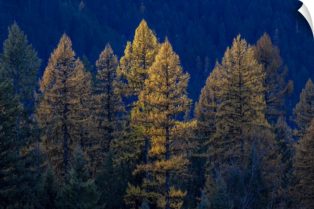 <p>Backlit autumn larch trees in the Kootenai National Forest, Montana, USA.</p>