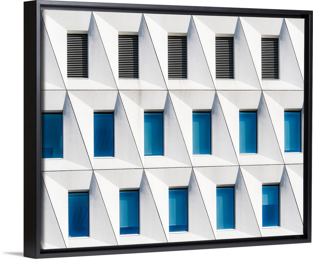 <p>Rows of windows and vents in a building, with diagonal lines.</p>