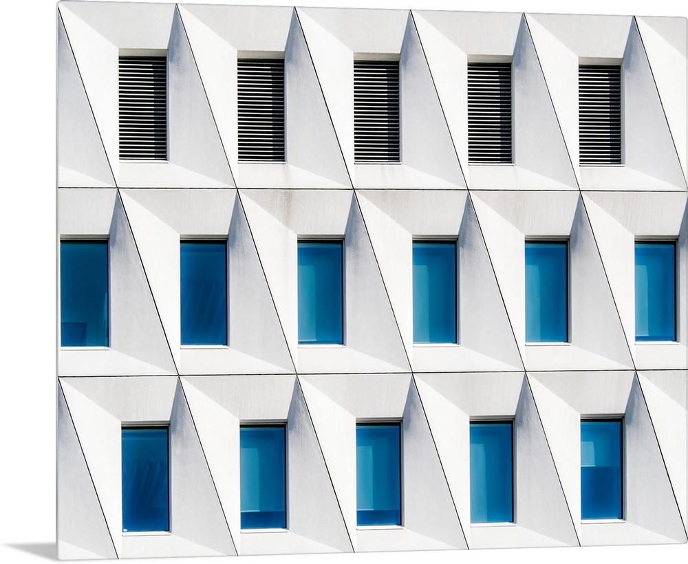 <p>Rows of windows and vents in a building, with diagonal lines.</p>