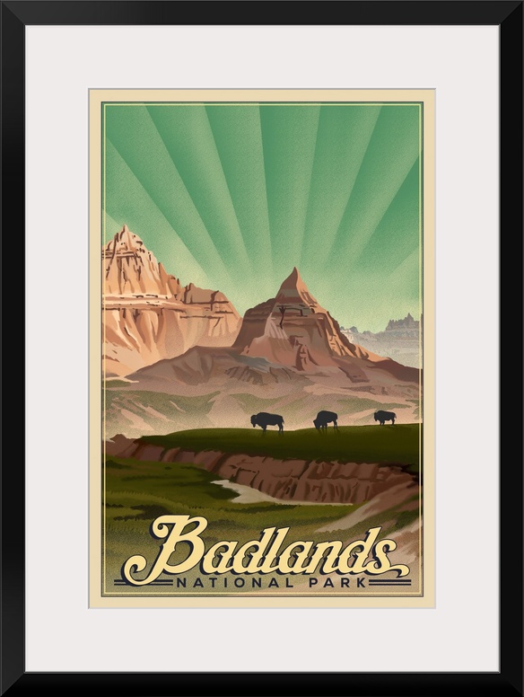 Art Landscapes Canyon Lantern Press United States South Dakota Badlands National Park Bison and Buffalo