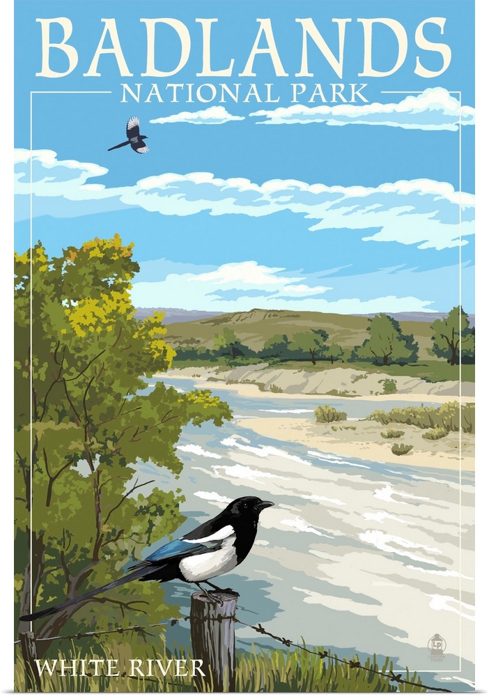 Art River, Creek and Stream Lantern Press South Dakota Travel Posters Retro Travel Posters Wildlife Bird