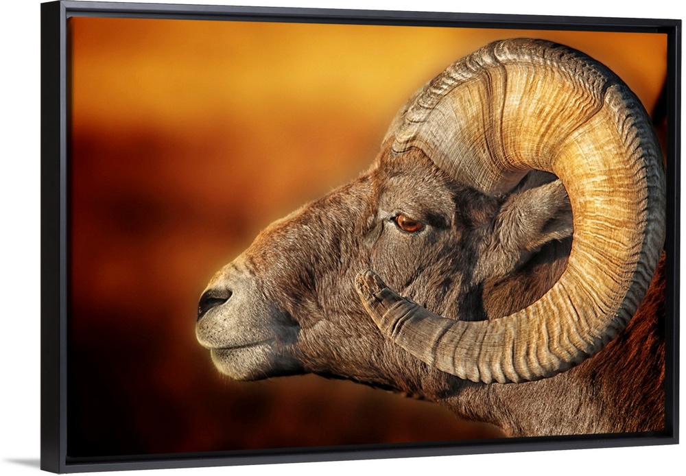 <p>Portrait of a ram with large, curled horns, in the Badlands of South Dakota</p>