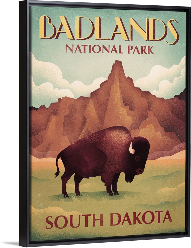 Art Decorative Art Graphic Art Landscapes United States South Dakota Badlands National Park Travel Posters Contemporary Travel Posters Martin Wickstrom Wildlife Bison and Buffalo