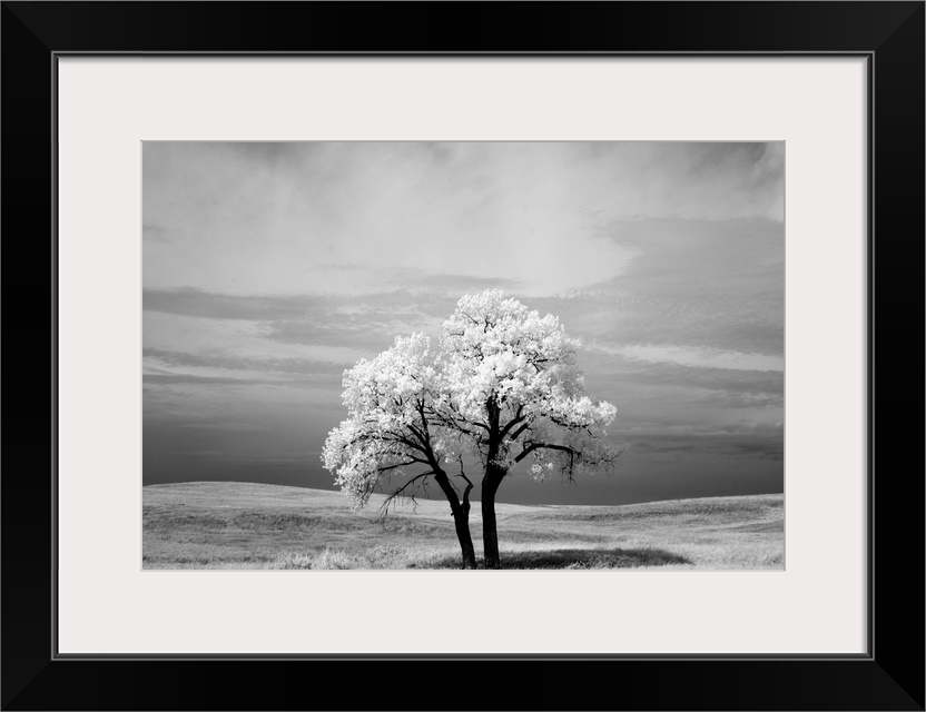 <p>Infrared photography image of a tree in a field in Badlands National Park in South Dakota.</p>