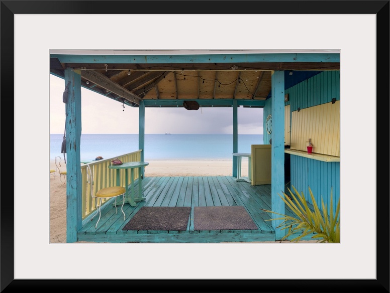 <p>Bahamas, Cat Island, Atlantic ocean, Kiosk on Old Bight Beach.</p>