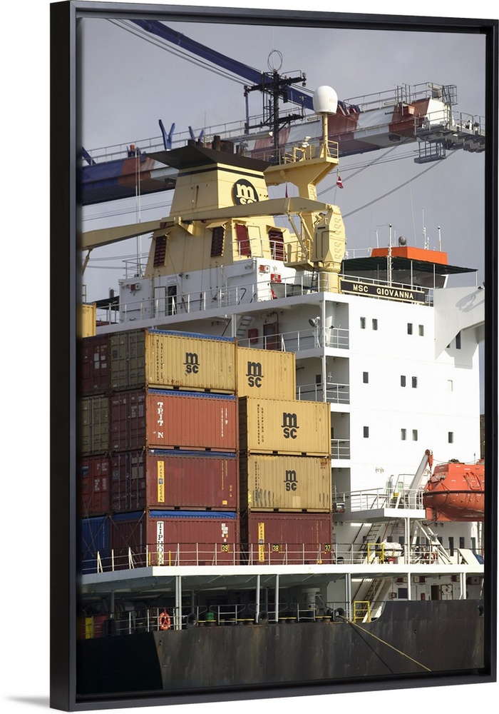 <p>BAHAMAS-Grand Bahama Island-Freeport:.Port of Freeport:.Container Cargo Port Area / Morning</p>