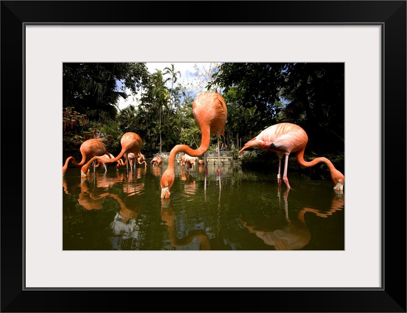 <p>Bahamas, New Providence Island, Nassau, Caribbean Flamingos (Phoenicopterus ruber) at Ardastra Gardens</p>