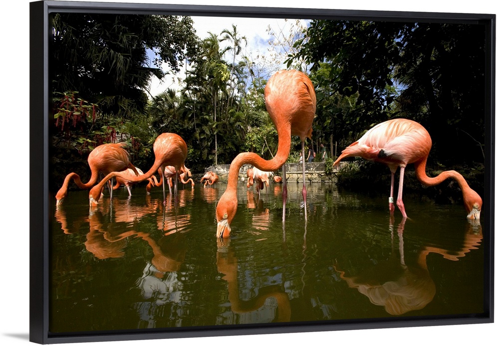 <p>Bahamas, New Providence Island, Nassau, Caribbean Flamingos (Phoenicopterus ruber) at Ardastra Gardens</p>
