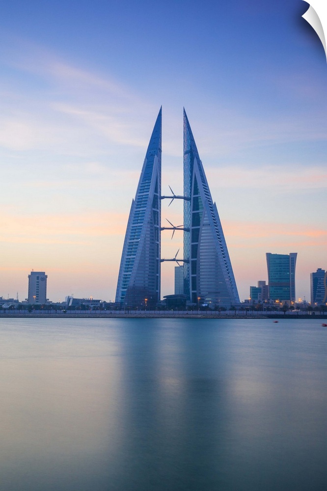 <p>Bahrain, Manama, Bahrain Bay, View of Bahrain World Trade Center</p>