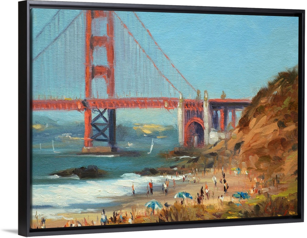 <p>A painting of people sunbathing on Baker's beach in San Francisco California.</p>