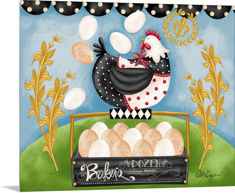 <p>Whimsical hen with a Baker's Dozen great for country kitchen</p>