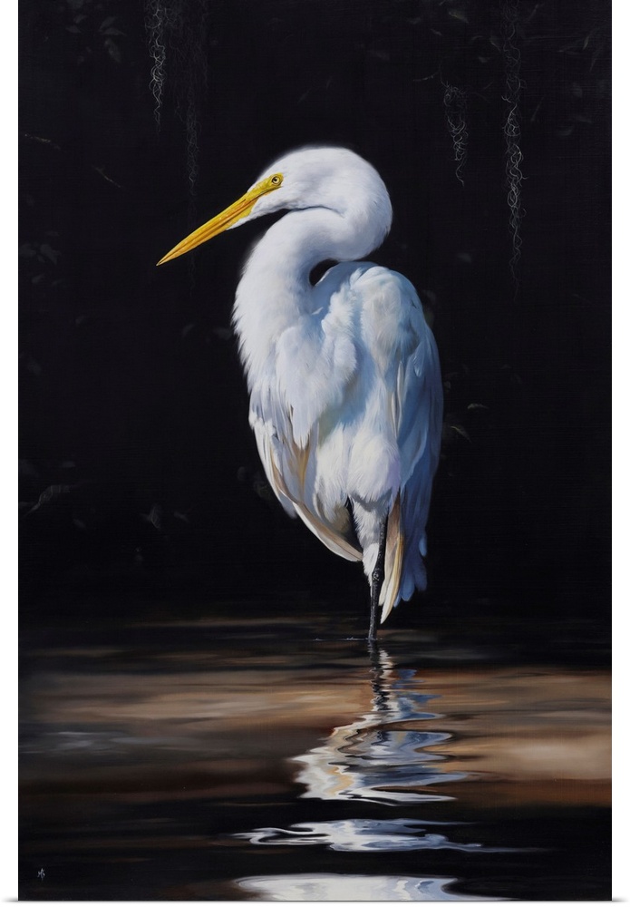 Art Black and White Wall Art Contemporary Art Mark Kelso Painting Wildlife Bird Heron and Egret