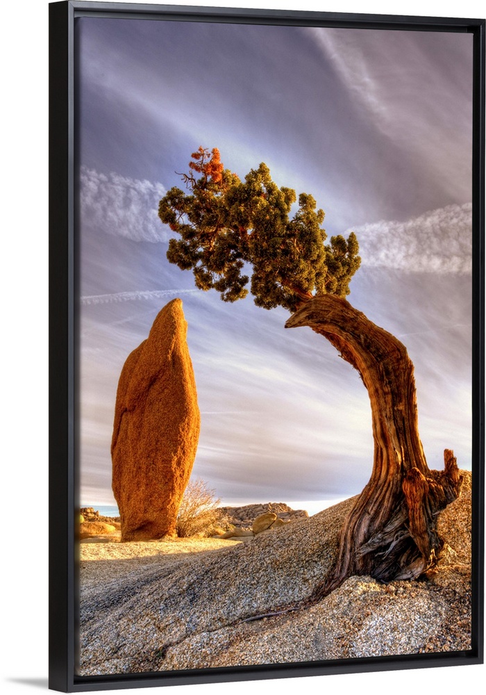 <p>Interesting slender rock and rigged juniper tree. It located in Jumbo Rocks campground in Joshua Tree National Park.</p>