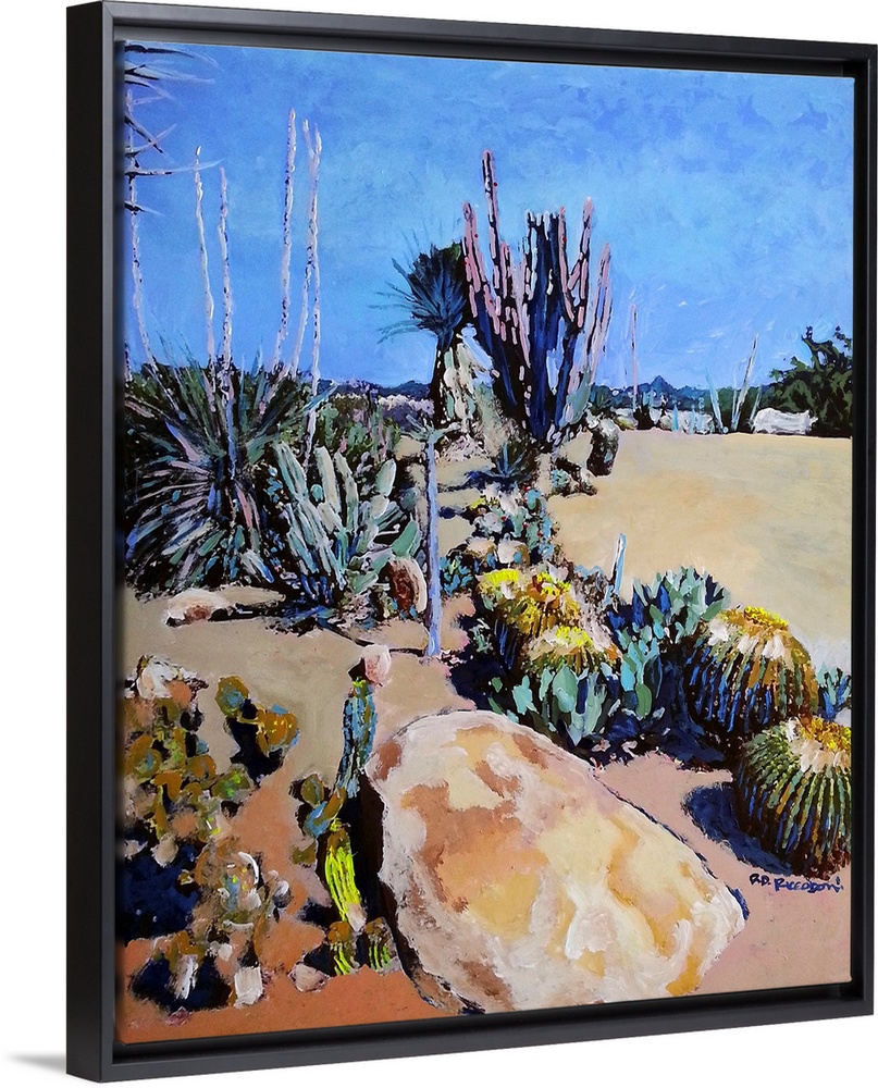 <p>Cactus at the Desert Garden in Balboa Park San Diego, California, painting by RD Riccoboni. Cactus specimens in the historic gardens on Park Boulevard on the mesa overlooking Florida Canyon.</p>