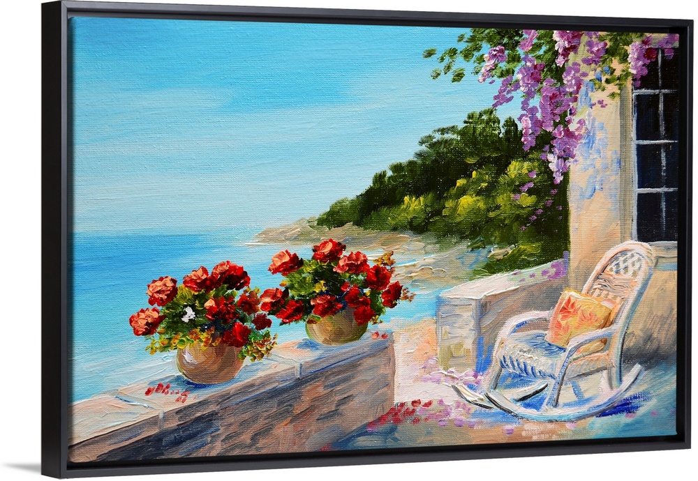 <p>Originally an oil painting of a balcony near the sea.</p>