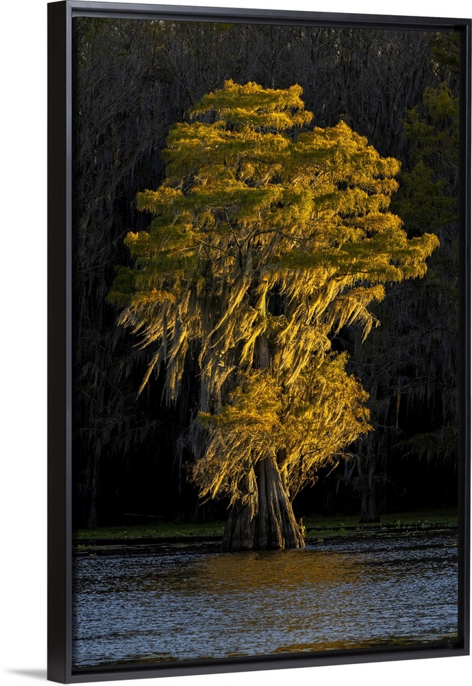 <p>Bald cypress trees in autumn colors at sunset. Caddo Lake, Uncertain, Texas. United States, Texas.</p>