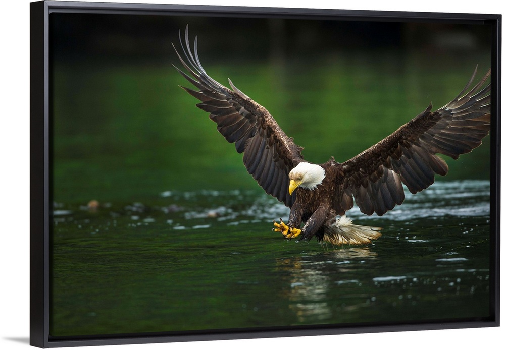<p>Canada, British Columbia, Galiano Island, Bald Eagle (Haliaeetus leucocephalus) spreads wings while fishing in Active Pass</p>