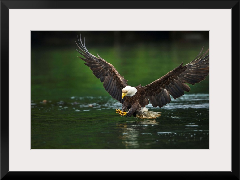 <p>Canada, British Columbia, Galiano Island, Bald Eagle (Haliaeetus leucocephalus) spreads wings while fishing in Active Pass</p>