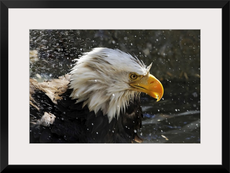 <p>Bald eagle (Haliaeetus leucocephalus) with splashes of water; Denver, Colorado, United States of America</p>