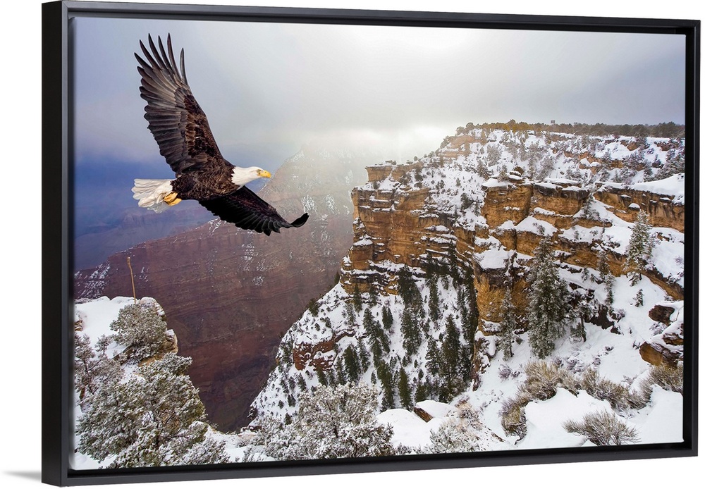 <p>Bald eagle flying above grand canyon, Arizona.</p>