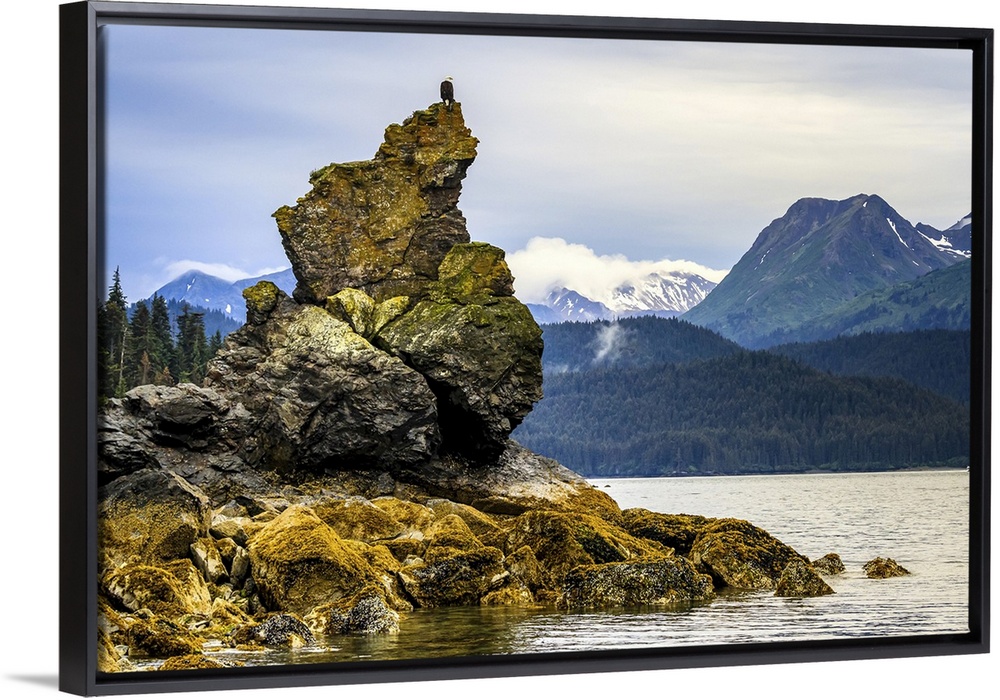 <p>Bald Eagle, Haliaeetus leucocephalus, perched on rock pinnacle in Kachemak Bay.</p>