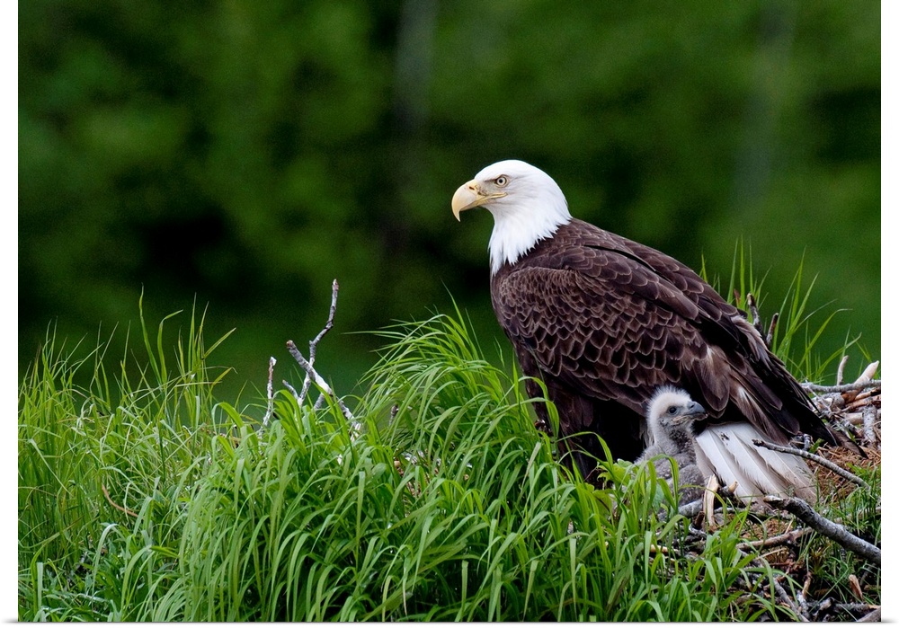 <p>Bald Eagle nesting with her chick, Kukak Bay, Katmai National Park, Southwest Alaska, Summer</p>