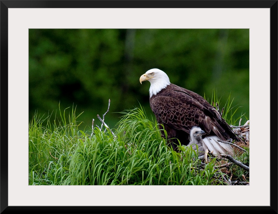 <p>Bald Eagle nesting with her chick, Kukak Bay, Katmai National Park, Southwest Alaska, Summer</p>