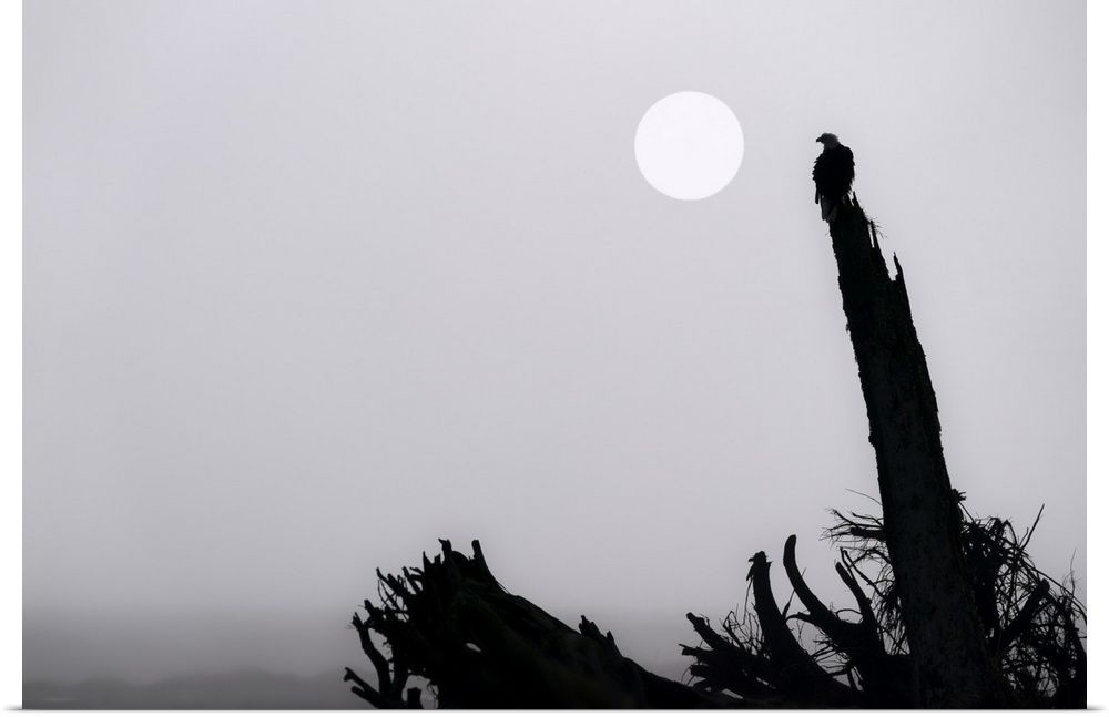 <p>Bald eagle (Haliaeetus leucocephalus) on a foggy morning at Mendenhall Wetlands; Juneau, Alaska, United States of America</p>