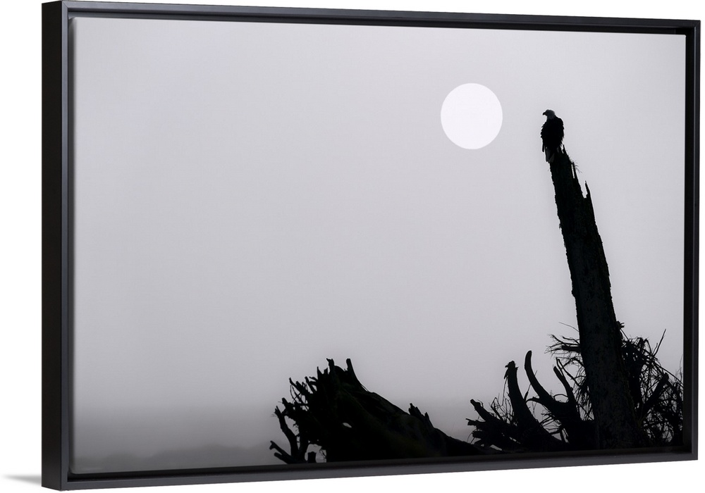 <p>Bald eagle (Haliaeetus leucocephalus) on a foggy morning at Mendenhall Wetlands; Juneau, Alaska, United States of America</p>
