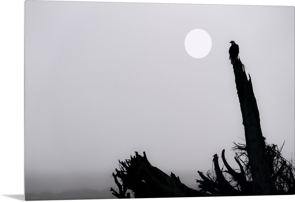 <p>Bald eagle (Haliaeetus leucocephalus) on a foggy morning at Mendenhall Wetlands; Juneau, Alaska, United States of America</p>
