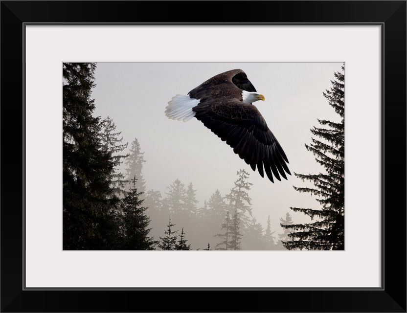 <p>Bald Eagle Soars Through Mist In The Tongass National Forest, Alaska</p>