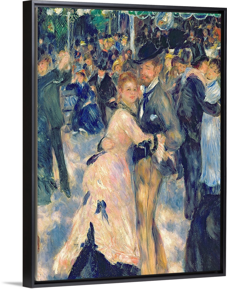 <p>A classic piece of artwork with couples dancing as a crowd behind them looks on. The focus is on one couple that is painted in the middle of the piece.</p>