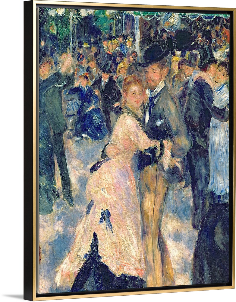 <p>A classic piece of artwork with couples dancing as a crowd behind them looks on. The focus is on one couple that is painted in the middle of the piece.</p>