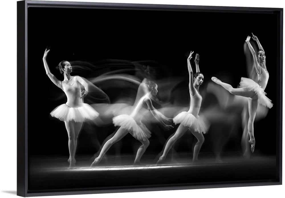 <p>Long exposure photo of a ballerina dancing across the stage, showing four different poses.</p>