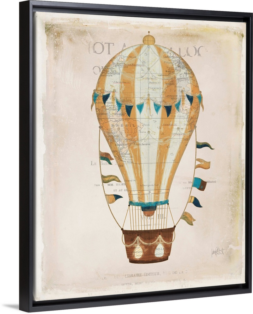 <p>Illustration of a colorful hot air balloon on a aged background with a faint map and writing.</p>