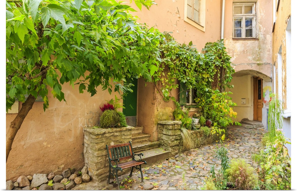 <p>Baltic States, Estonia, Tallinn, City Windows With Vine Covered Entrance To Building</p>