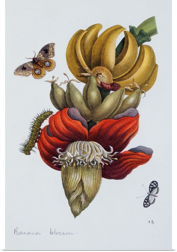 <p>An illustration of tropical moths and caterpillars around a banana blossom from the book Das Kleine Buch der Tropicwunder, ca. 19th century.</p>
