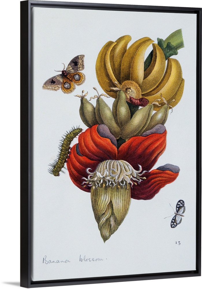 <p>An illustration of tropical moths and caterpillars around a banana blossom from the book Das Kleine Buch der Tropicwunder, ca. 19th century.</p>