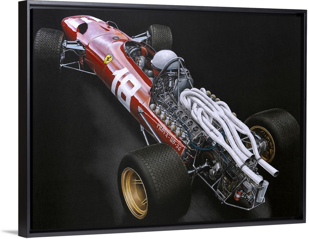 <p>Illustration of a Formula One car on a black background, highlighting the back engine.</p>