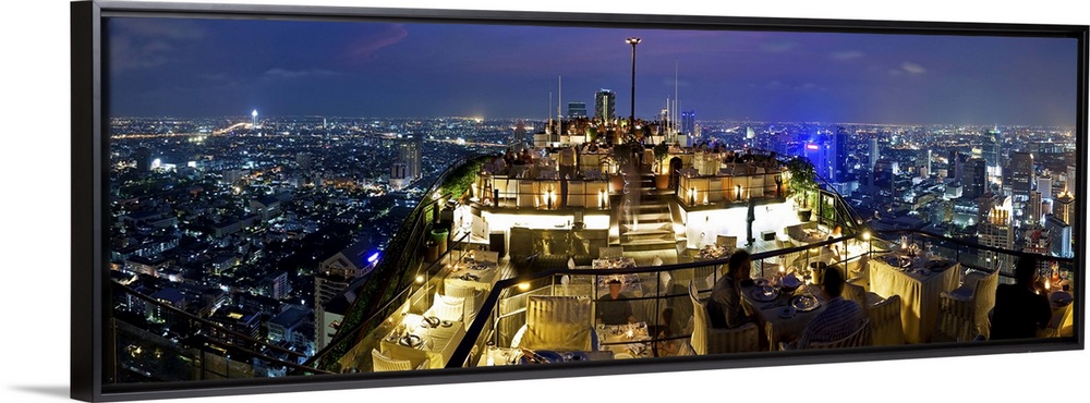<p>The view over the Bangkok City skyline from Vertigo, a bar and restaurant on top of the Banyan Tree Hotel, Bangkok, Thailand, South East Asia</p>