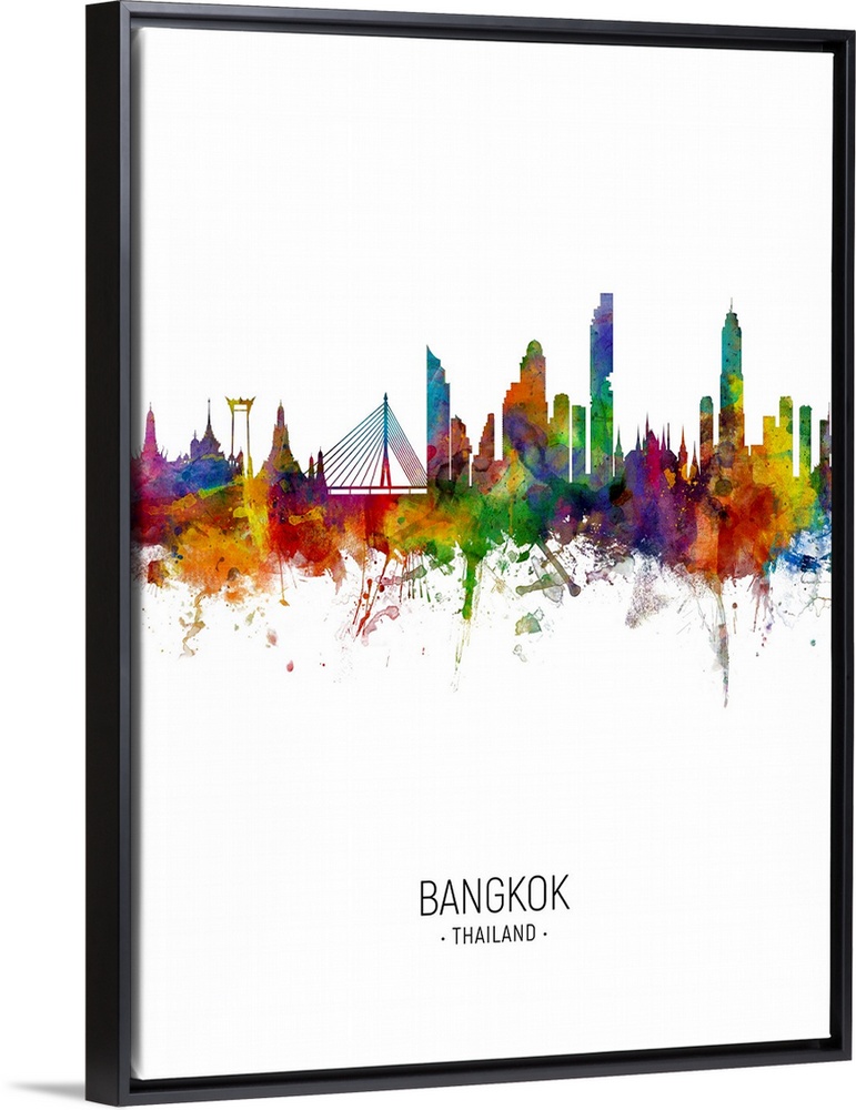 <p>Watercolor art print of the skyline of Bangkok, Thailand</p>