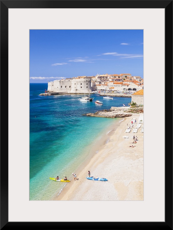 <p>Banje beach, Old Port and Dubrovnik Old Town, Dubrovnik, Dalmatian Coast, Croatia</p>