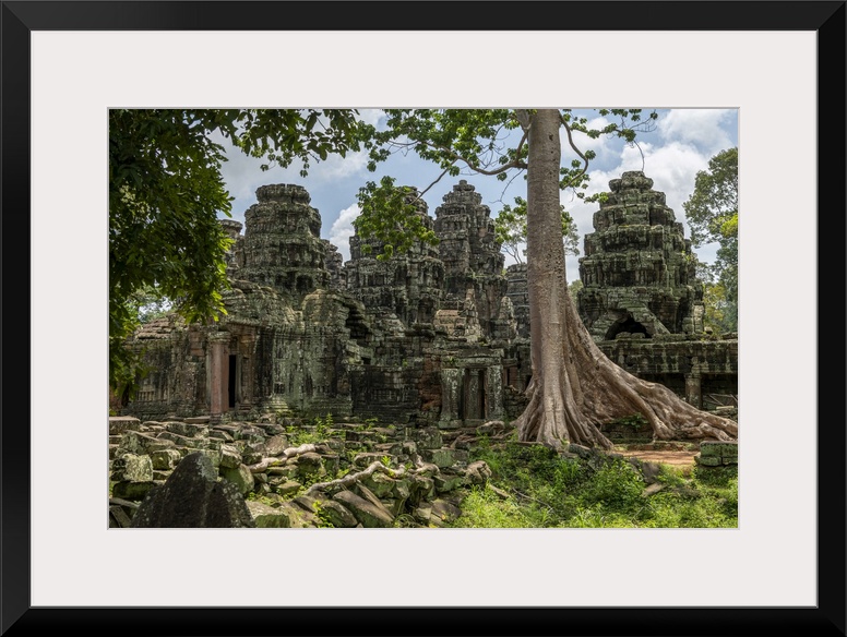 <p>Fallen rocks and trees behind ruined temple, Banteay Kdei, Angkor Wat; Siem Reap, Siem Reap Province, Cambodia</p>