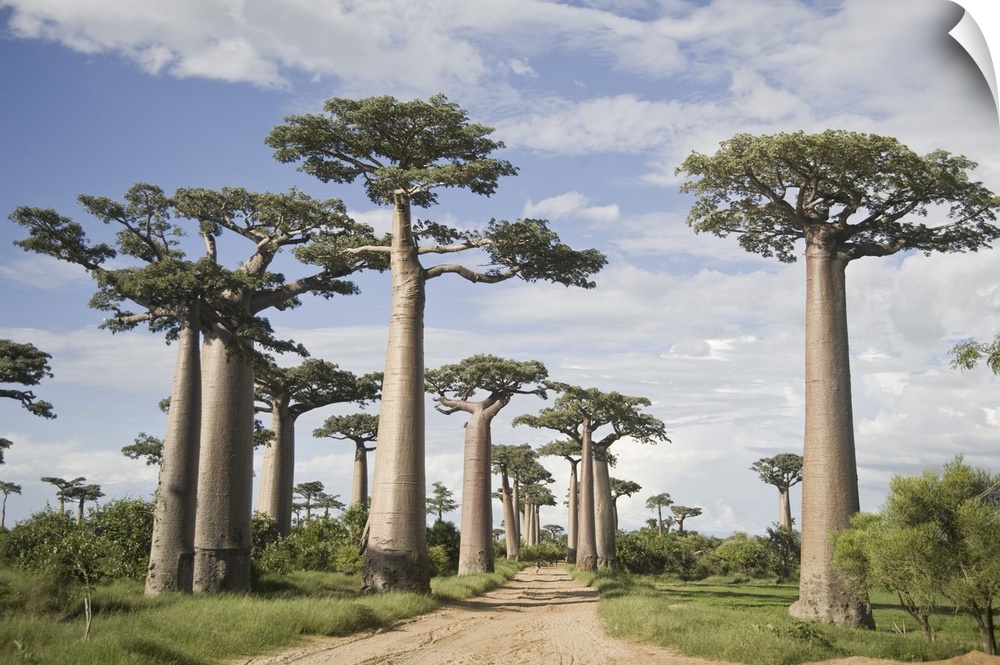 <p>Baobab trees (Adansonia digitata) along a dirt road, Avenue of the Baobabs, Morondava, Madagascar</p>