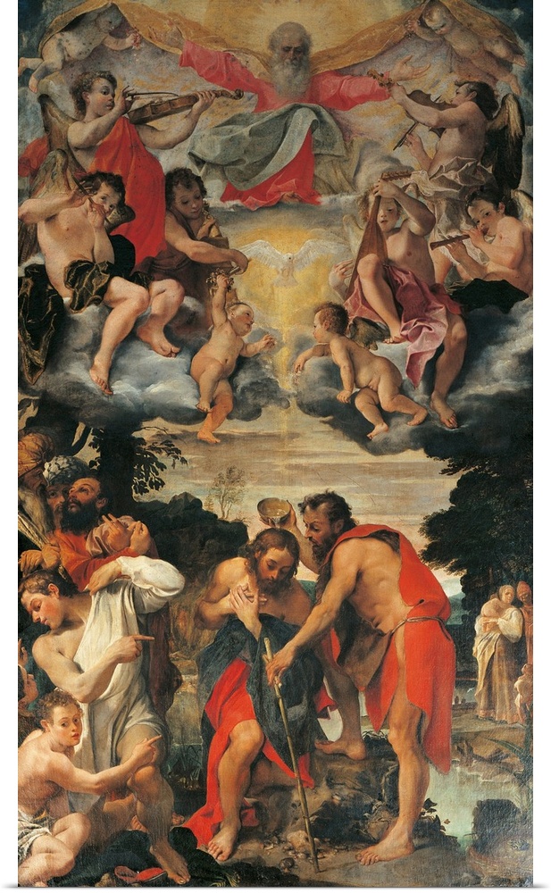<p>Baptism of Christ, by Annibale Carracci, 1585, 16th Century, oil on canvas, cm 383 x 225 - Italy, Emilia Romagna, Bologna, San Gregorio Church. All. Baptism Christ St Baptist river cloak red. (68416) Everett Collection\Mondadori Portfolio</p>