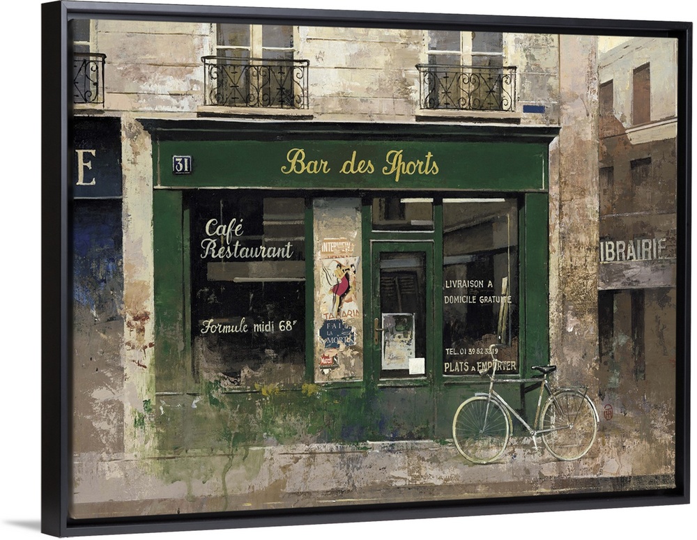 <p>Contemporary painting of a bar storefront downtown in a city.</p>