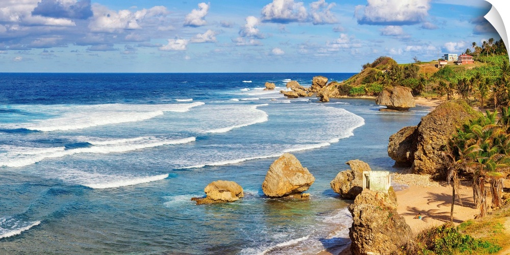 <p>Barbados, Saint Joseph, Tropics, Antilles, Lesser Antilles, Windward Islands, Caribbean, West Indies, Coast at Bathsheba on the east coast. In the foreground the large boulder known as Bathsheba Rock.</p>